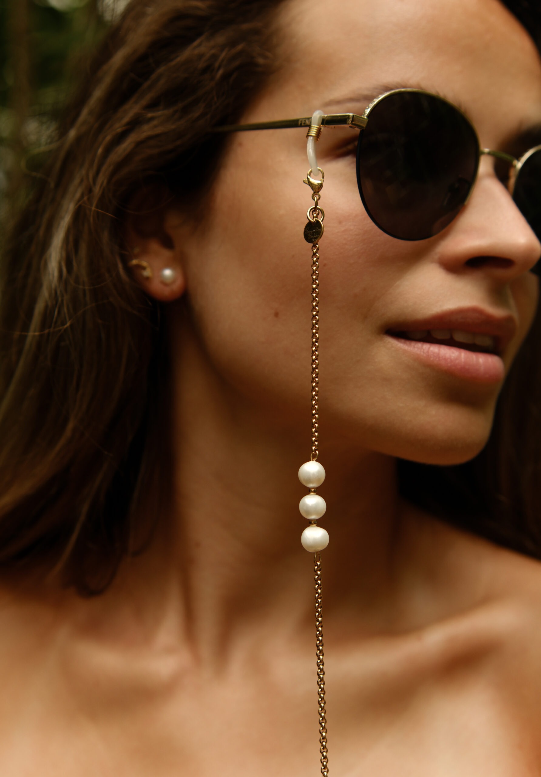 Minimalistická retiazka na okuliare z riečnych perál a retiazky z chirurgickej ocele. Dĺžka retiazky je 75cm.