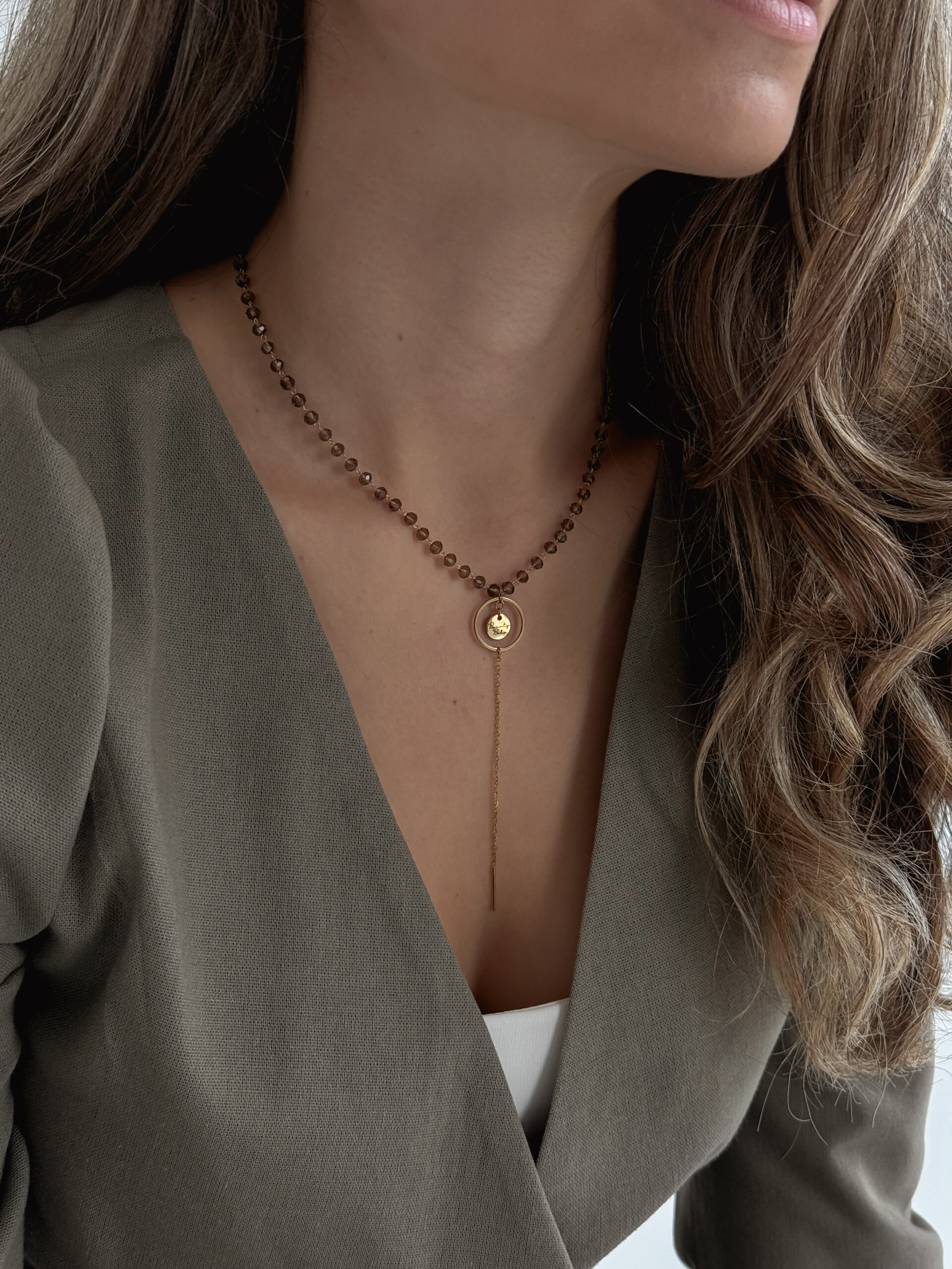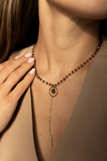 Minimalistický náhrdelník z kryštálikov a medajlónikom Bounty Boho. Dĺžka náhrdelníka je 40 cm, (v prípade záujmu inej dĺžky, nám napíšte do poznámky požadovanú dĺžku).