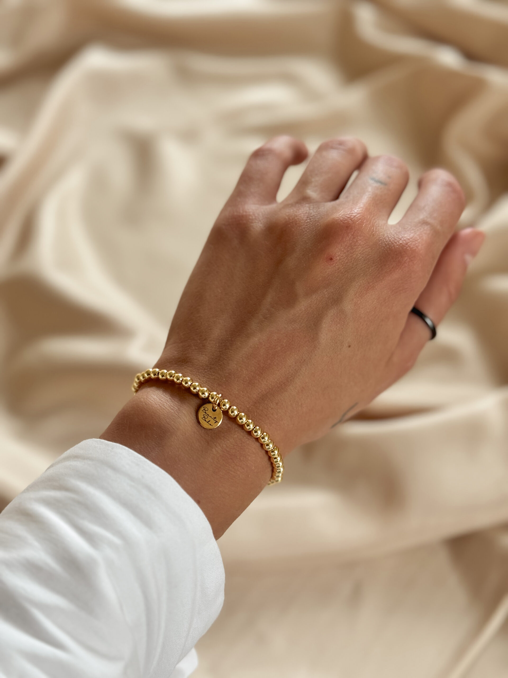 Minimalistický guličkový náramok na ruku na gumičke s logom Bounty Boho.