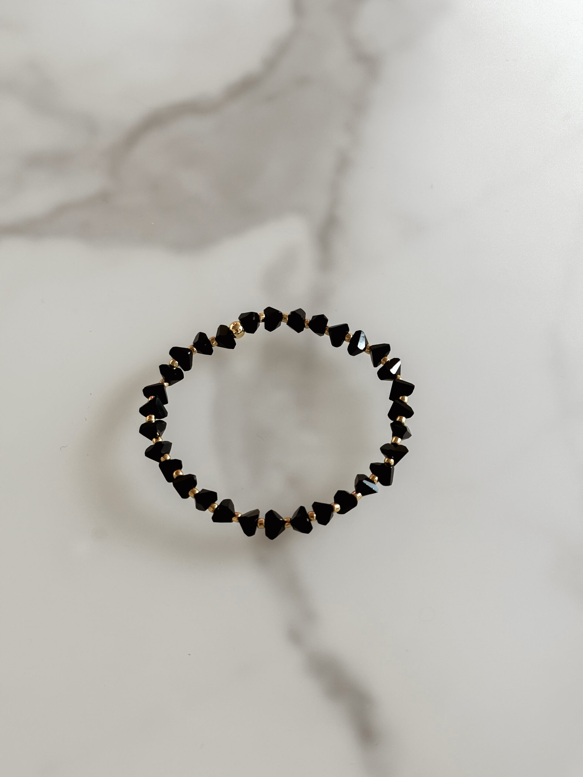 Minimalistické náramky na ruku zo sekaných kryštálov onyxu. Náramok je na gumičke.