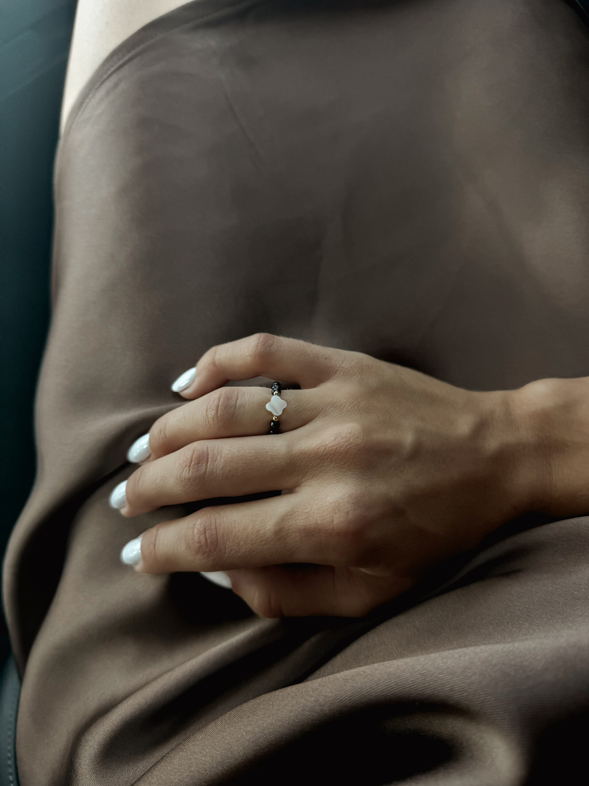 Minimalistický prsteň z onyxu a perlete.