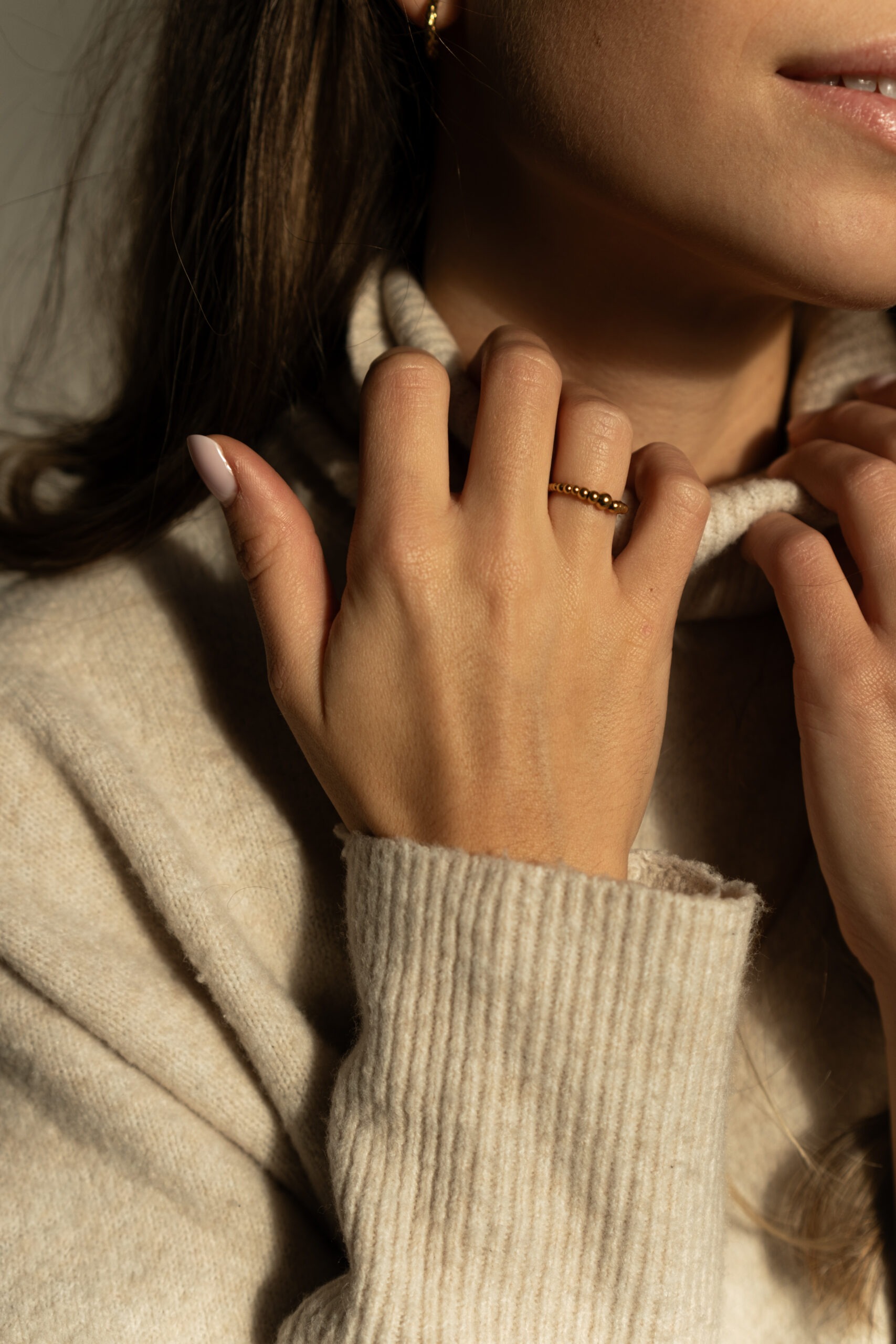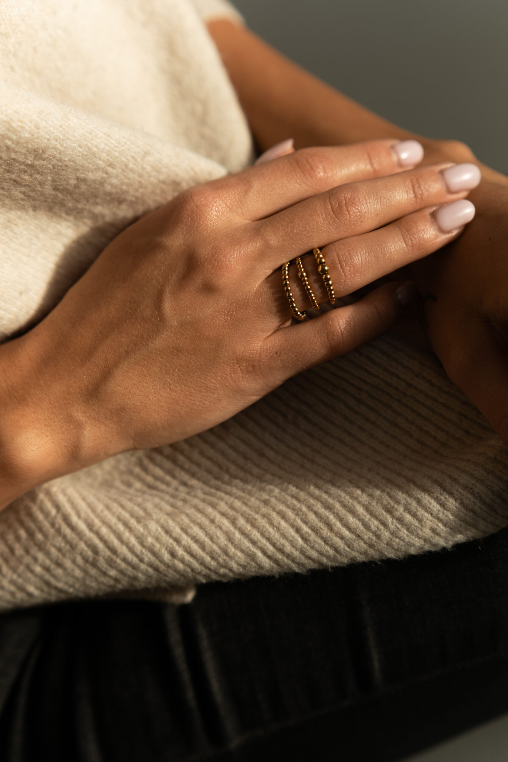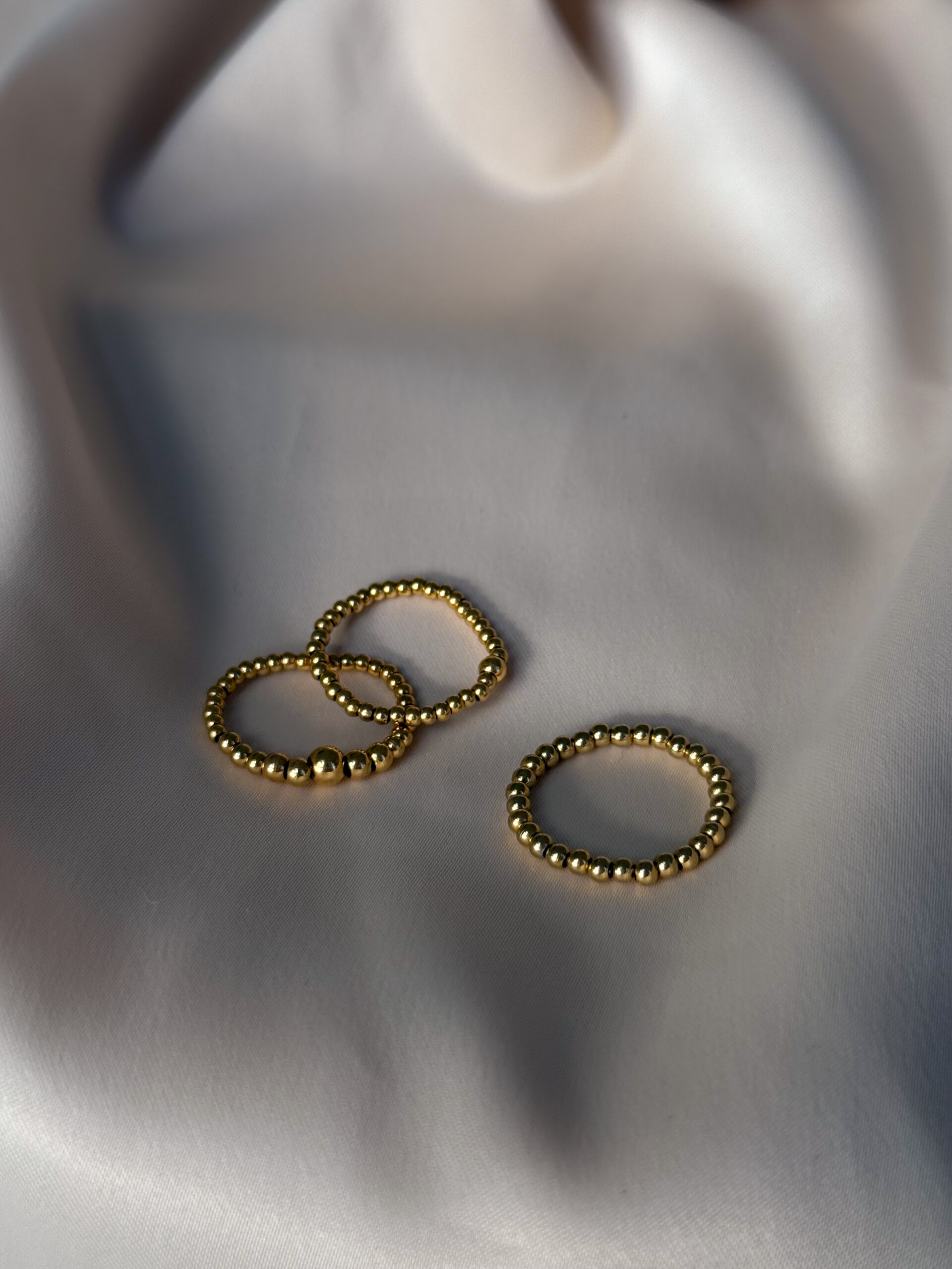 Minimalistický prstienok z pozlatených guličiek.